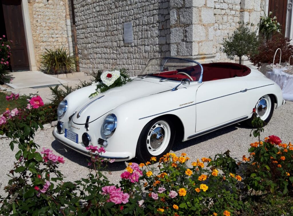 Porsche 356A Speedster replica anno 1955 colore bianco con interni in pelle rosso Cartier, per essere accarezzati dal vento in una splendida Spider d’epoca.